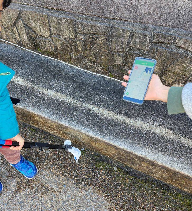 ゴミを拾うとゴミの種類や位置情報が、付属のスマホに瞬時に保存されます。(写真右)子どもたちもゲーム感覚で楽しくゴミが拾えます。