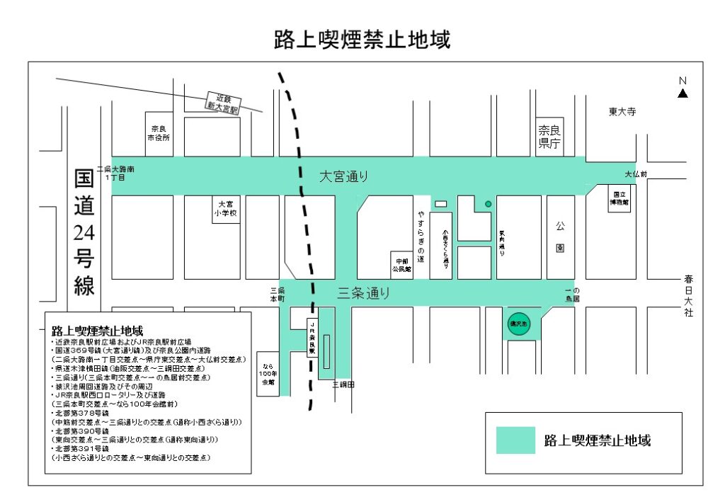 あまり周知されていませんが、奈良市でも罰則つきの路上喫煙防止条例があります。