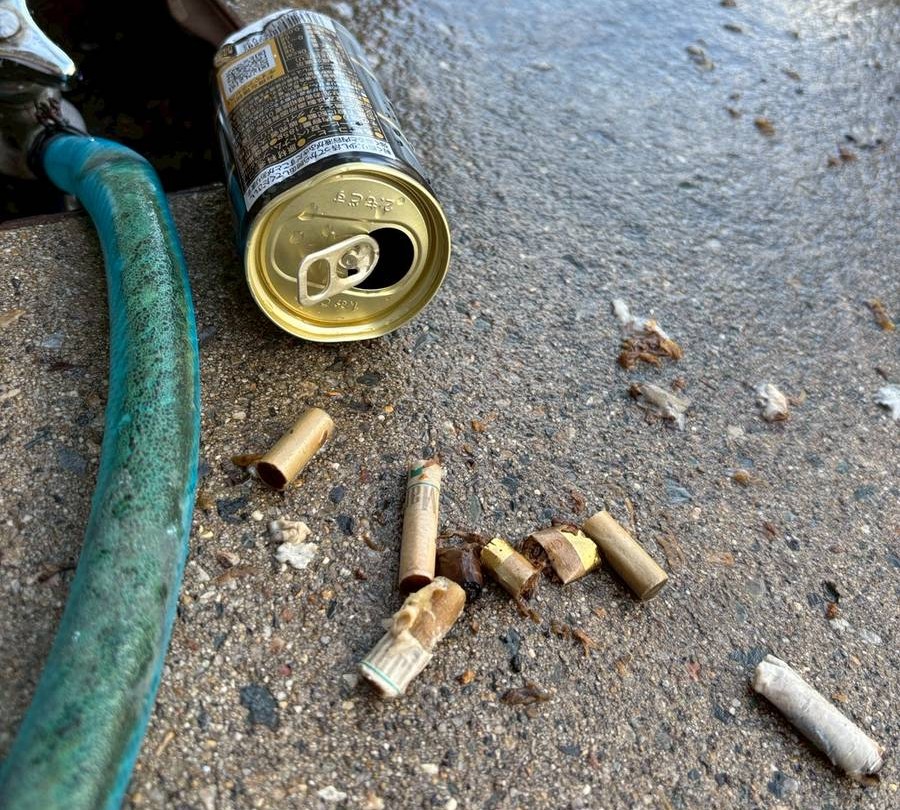バス停に捨てられていた空き缶の中にタバコの吸い殻がびっしり! これ、缶を切って開かない限り取り出せないんですよね。リサイクルには回せないので、不燃ごみとして処理するしかなくなります。こういうことをする人、本当に無責任です(怒)